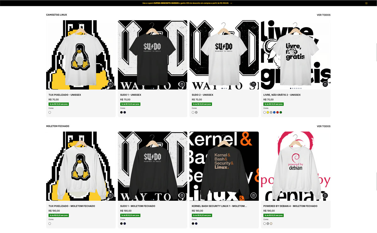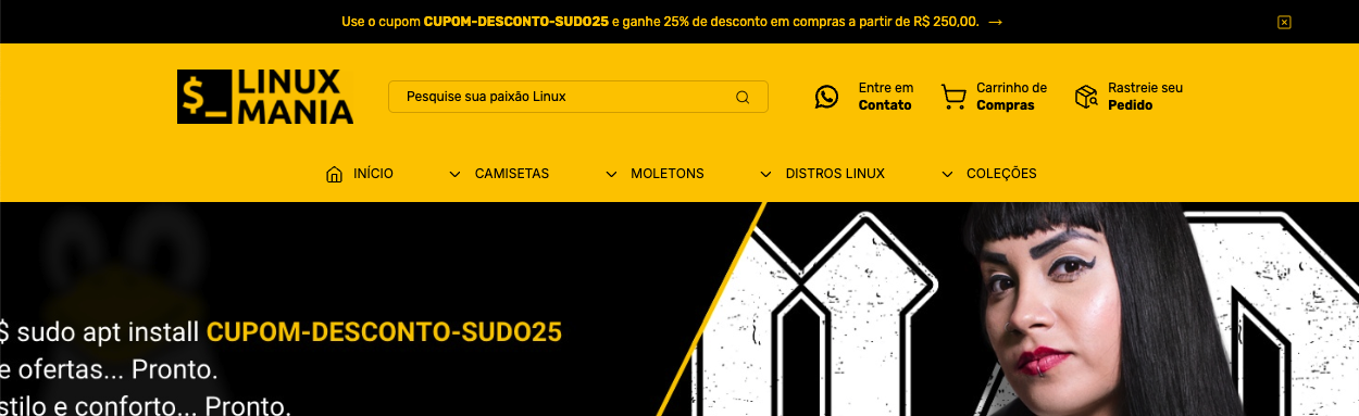 Use para destacar promoções, frete grátis, cupons ou lançamentos, como fez a loja LinuxMania, por exemplo.