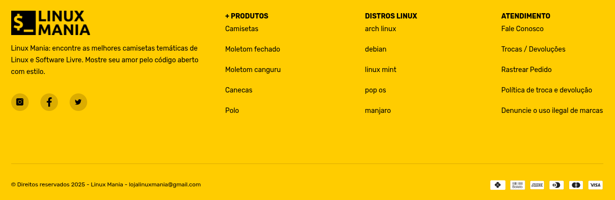 Print da Página Inicial da loja Linux Mania
