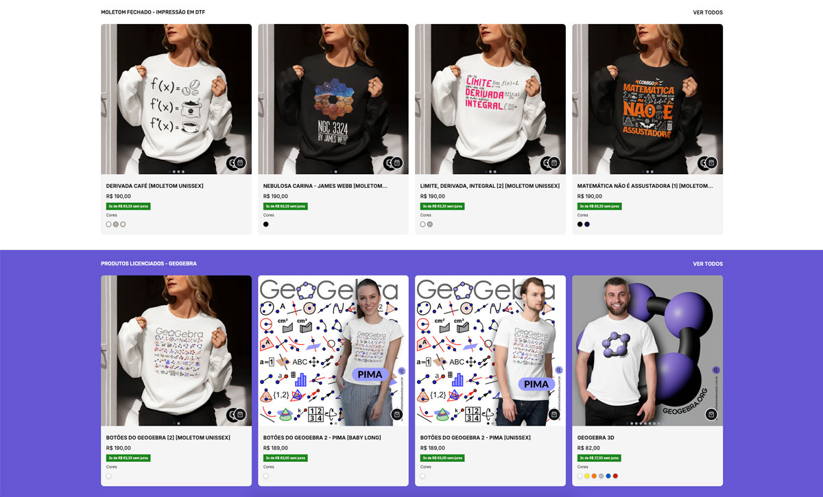 Print da Página Inicial da loja Camisetas de Exatas